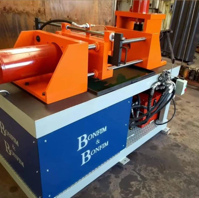 A Afuniladora de tubos fabricada pela Bonfim & Bonfim Equipamentos conifica tubos de 3" para 2" utilizando sistema de 4 matrizes.