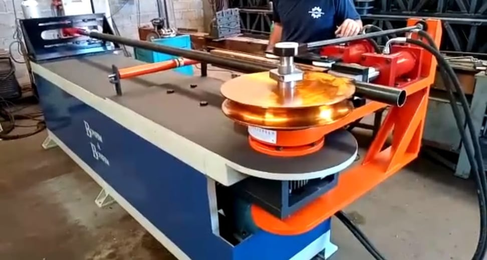 A Curvadora de Tubos B38 efetua uma dobra por vez no sentido horizontal. Possui sistema de espiga interna para maior eficiência em raios pequenos de paredes finas.